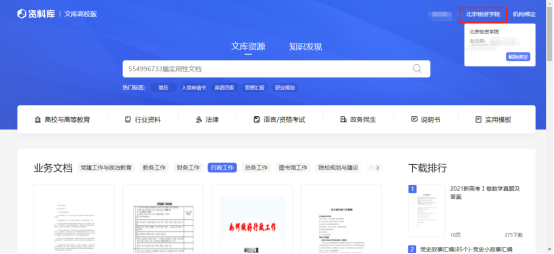 验证成功后即可在校外通过百度账号访问eduai.baidu.com(百度文库高校版)下载资源。(验证成功后会出现所绑定学校的名称和解除绑定按钮)