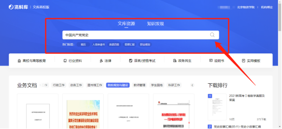 采用以上方式登录后,回到百度文库高校版首页(eduai.baidu.com),通过搜索框属于所需文件的关键词。