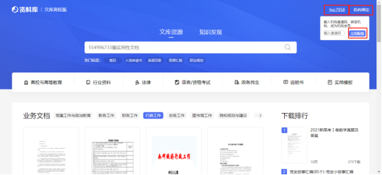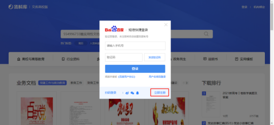 2、登录百度个人账号+密码(或手机号+短信验证码),点击进入首页,在检索框内进行所需文档的检索并下载。(没有百度账号的老师请自行注册百度账号)