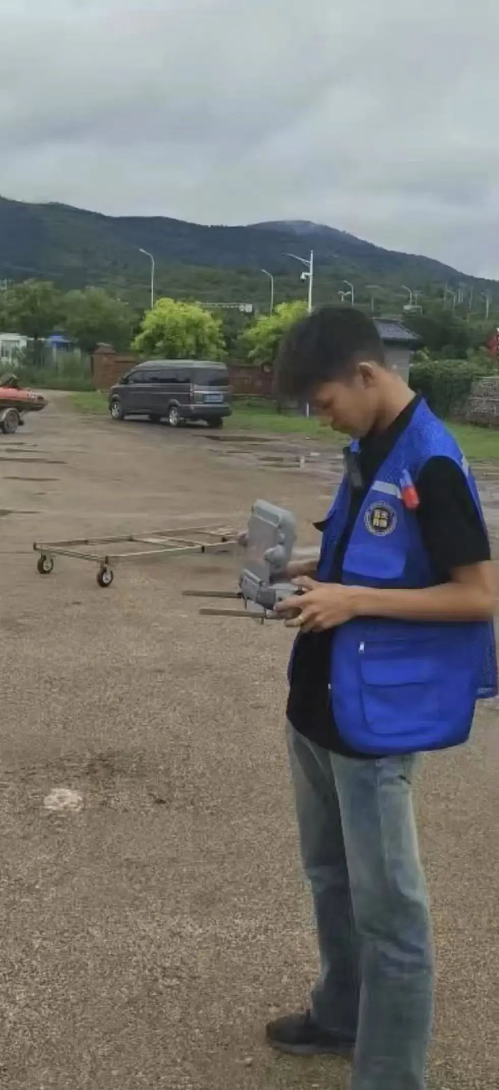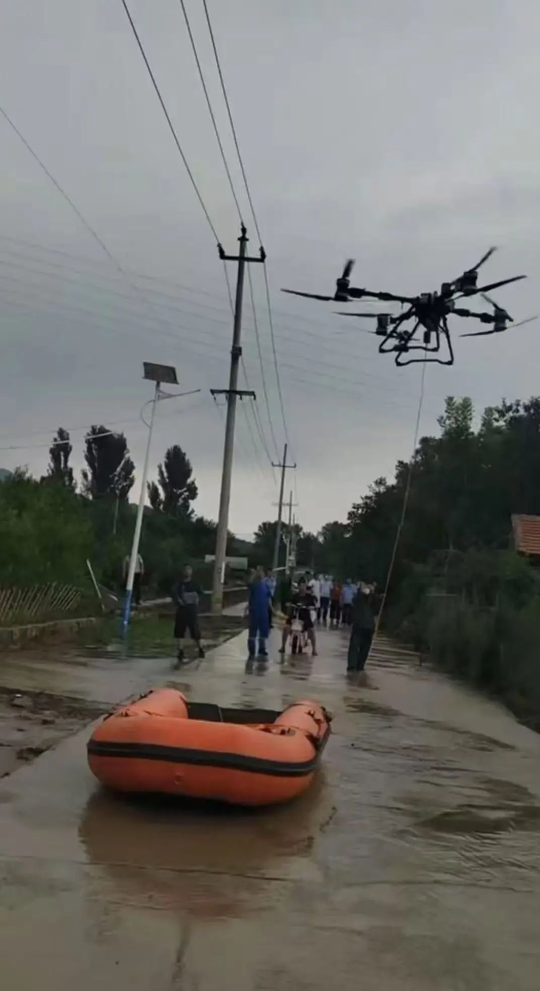 7月28日早上7时,一架无人机冲破雨幕,出现在下营镇石炮沟村上空。“大家不要着急,救援队马上就到!”无人机的扩音器中传来坚定的声音。操控者正是浑身湿透的刘俊兴,他紧握遥控器,目光锁定雨水模糊的屏幕。