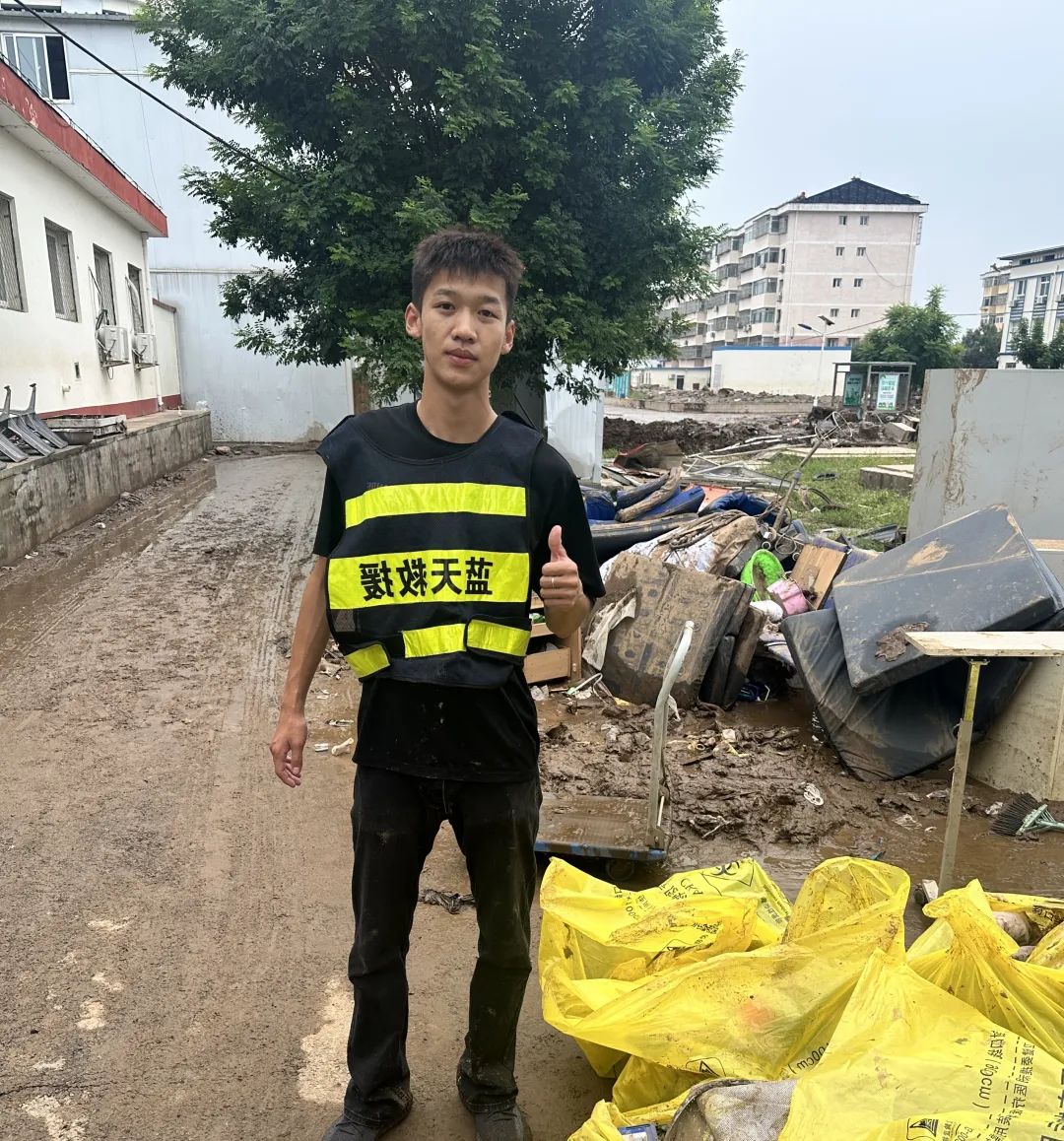 蓟州的洪水刚刚退去,8月2日,他又跟随救援队转战北京密云。在这里,这个20岁的年轻人投身到繁重的体力工作中,清淤、搬运、修缮房屋,处处都有他忙碌的身影。