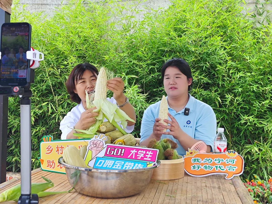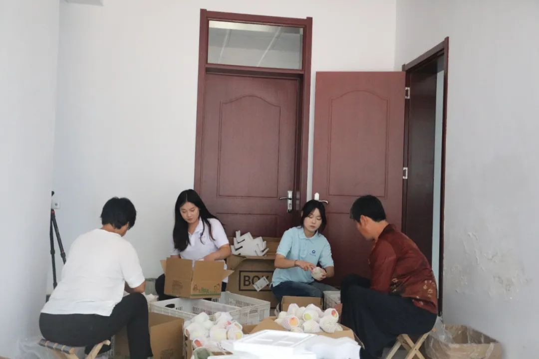 活动前期,团队师生提前谋划、精心筹备,系统学习短视频制作与电商直播专业技能。抵达宁河盆罐庄村后,师生们第一时间深入田间地头、走进农户家中,细致调研农业发展需求。当了解到农户正为农产品“丰产不丰收” 犯愁时,师生们迅速化身 “带货主播”,依托抖音直播平台为农户纾困解难。团队师生轮班值守直播间,每天累计直播近6小时,用接地气的话语讲述农产品故事、推介特色好物。短短两天内,水蜜桃、玉米等时令农产品便销售一空,累计销售额近万元,切实为村民拓宽了增收渠道。在推广当地特色 “津舟” 手工布鞋时,团队创新采用 “革命故事+助农产品” 的融合传播模式,在真情实感的讲述中让传统手工艺品成功搭上电商销售快车。驻村书记冯超超感激地说:“你们的到来真是解了我们的燃眉之急!宁河不缺优质农产品,就愁没有好销路。”