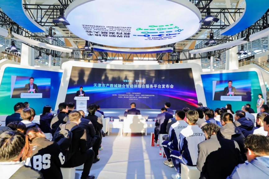 2024年11月21日,2024年世界职业技术教育发展大会期间,天津市产教城融合智能体综合服务平台发布会在国家会展中心举行。(主办方供图)